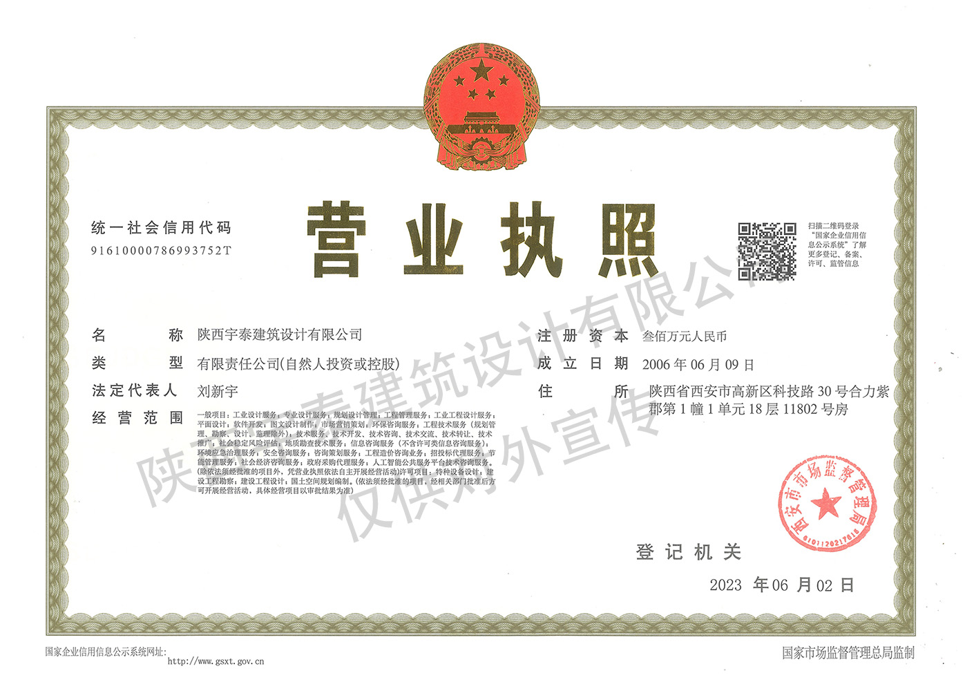 • 熱烈祝賀陜西宇泰建筑設計有限公司工程設計資..